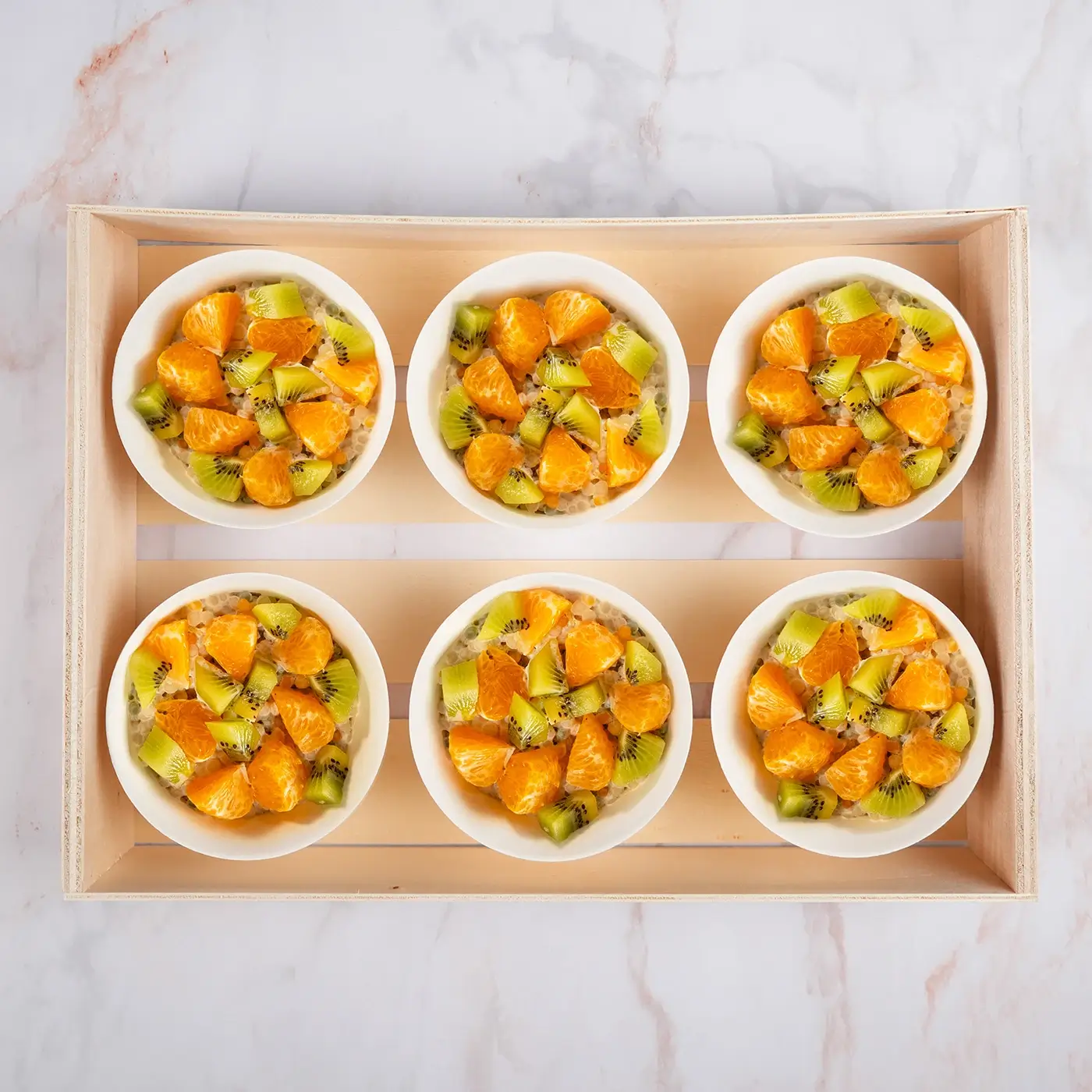 Nos perles du Japon sont cuisinées au lait de coco, et garnies de fruits de saison pour une touche naturellement sucrée.