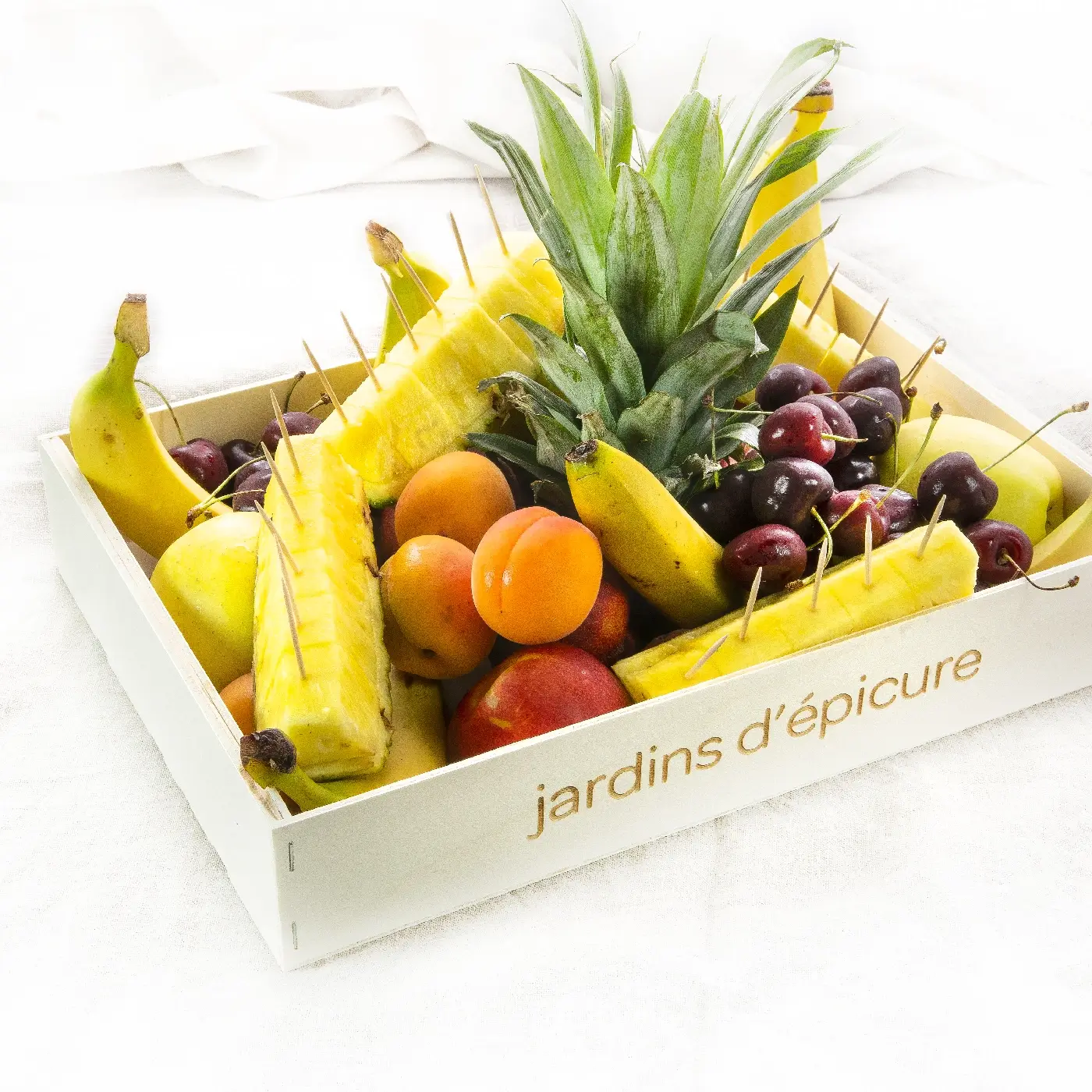 Enchantez vos convives avec un magnifique panier de fruits découpés frais du jour, idéal pour compléter un buffet, un cocktail ou un petit-déjeuner !